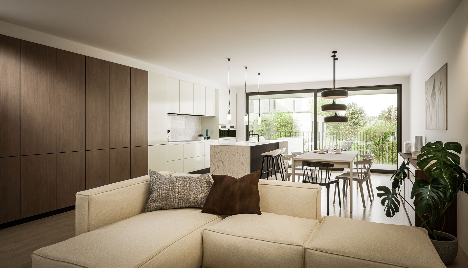 Er werd gekozen om te verwarmen aan de hand van geothermie en energie op te wekken via zonnepanelen. Deze combinatie van geavanceerde methoden zorgt ervoor dat het E-peil van elk appartement onder 20 duikt.